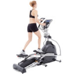 This unit also features a bright blue backlit LCD console, a multitude of program options, wireless heart rate, an anatomical figure that specifies which muscles are minimally and maximally activated, and a 2″ Q-Factor (space between feet).
